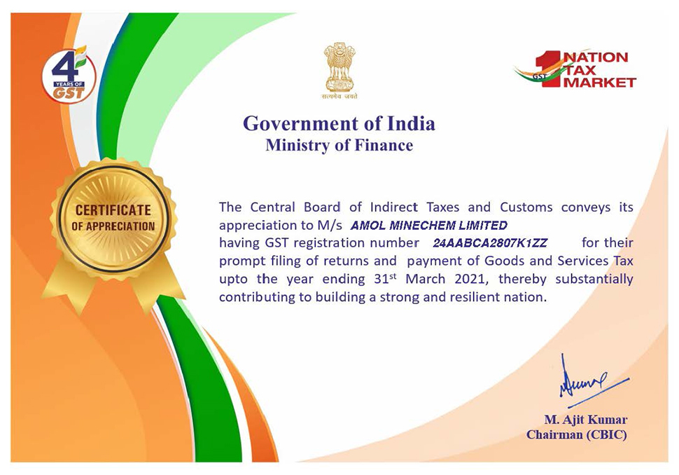 Our Company's name has been changed from Amol Dicalite Ltd to Amol Minechem Ltd. This change has been attributed to ceastion of our promoter Grefco Inc, USA.