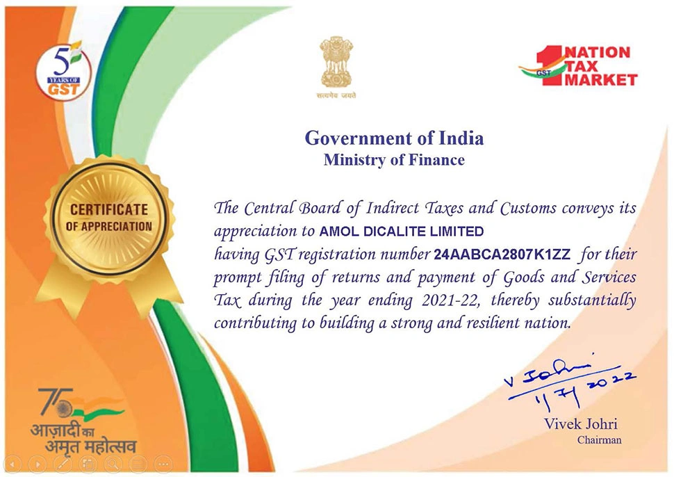 AMOL DICALITE LIMITED was established in the year 1979 to produce, for the first time in India, Perlite Filteraids and Perlite products under the technical and financial collaboration with an American company Grefco, Inc. USA, pioneers and world leaders of Perlite products.