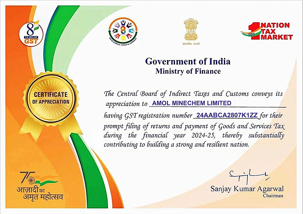 Our Company's name has been changed from Amol Dicalite Ltd to Amol Minechem Ltd. This change has been attributed to ceastion of our promoter Grefco Inc, USA.